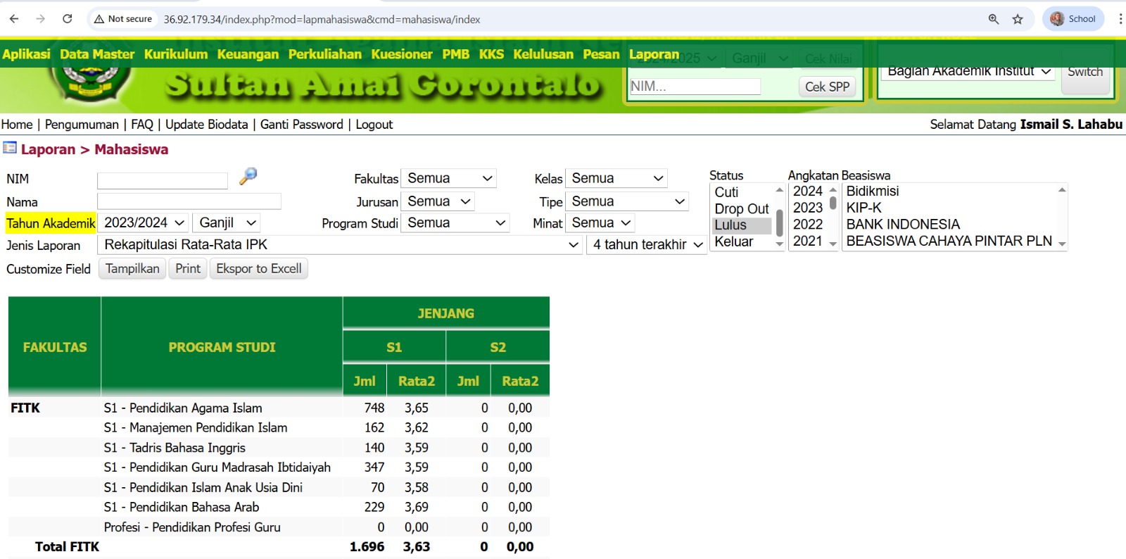 Grafik Alumni Prodi Pendidikan Agama Islam (PAI) Institut Agama Islam Negeri (IAIN) Sultan Amai Gorontalo