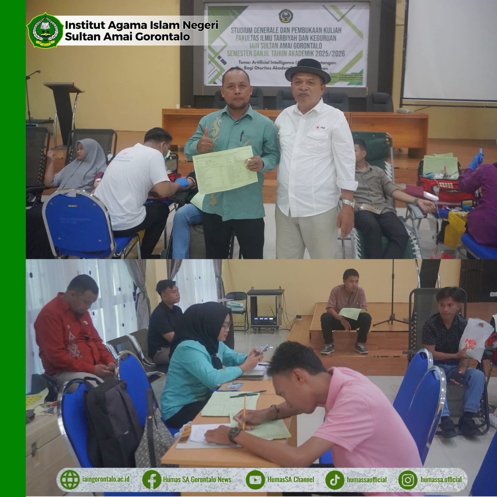Sebagai bentuk kepedulian terhadap sesama, sejumlah dosen Prodi PAI donorkan darahnya pada kegiatan yang digelar oleh Institut Agama Islam Negeri (IAIN) Sultan Amai Gorontalo bekerjasama dengan Palang Merah Indonesia (PMI) Provinsi Gorontalo dalam kegiatan Donor Darah Sukarela di Aula Fakultas Ilmu Tarbiyah dan Keguruan (FITK) Kampus 2 IAIN Sultan Amai Gorontalo.