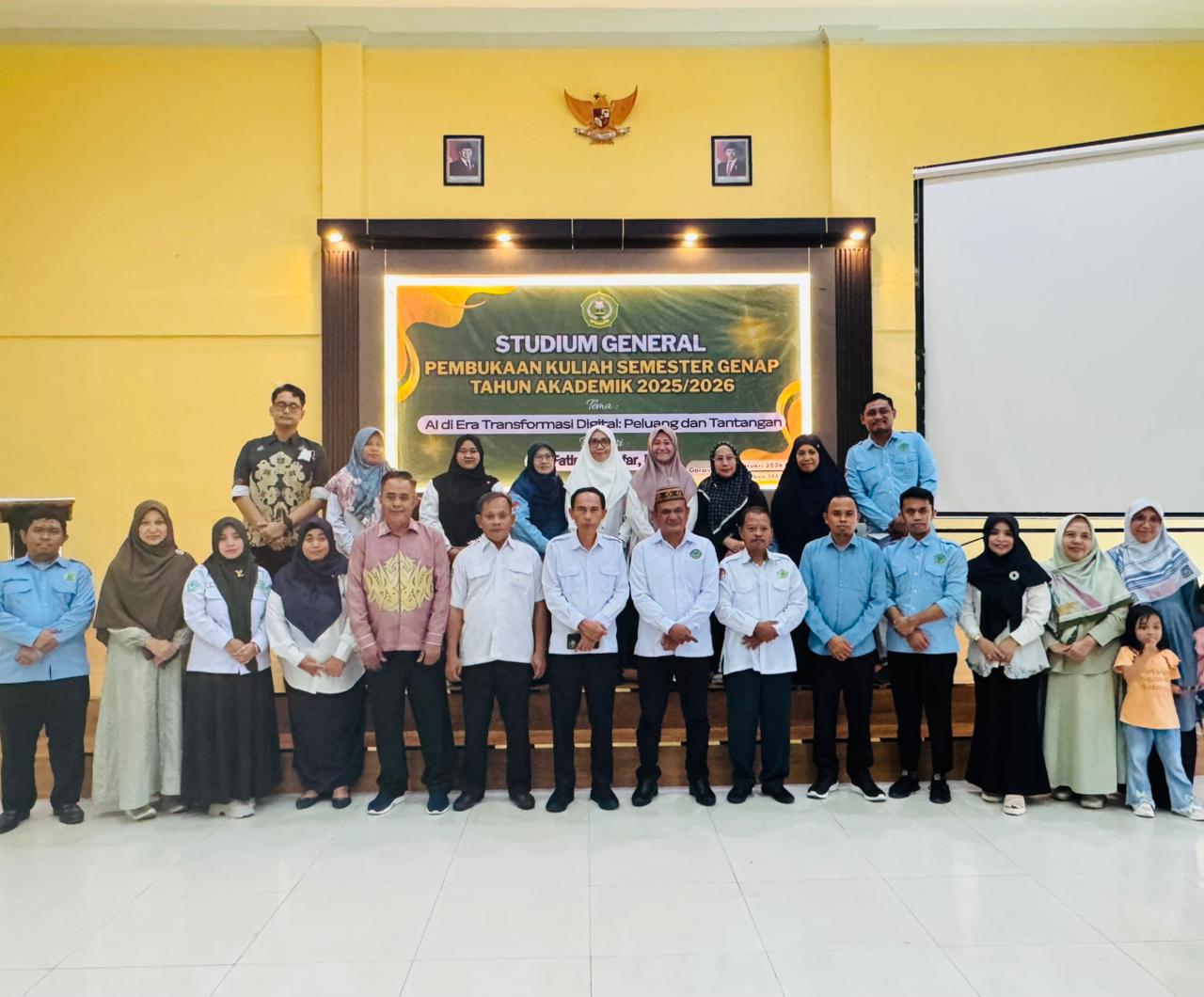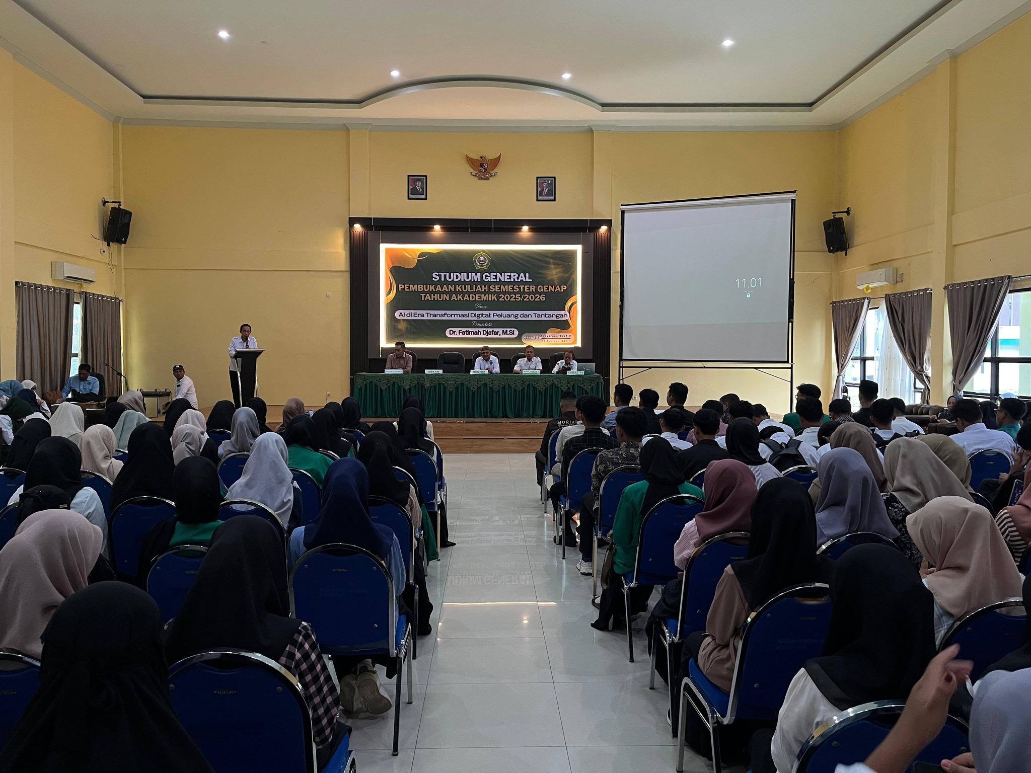Fakultas Ilmu Tarbiyah dan Keguruan (FITK) melaksanakan kegiatan Studium General dalam rangka Pembukaan Perkuliahan Semester Genap Tahun Akademik 2025–2026 dengan tema “AI di Era Transformasi Digital: Peluang dan Tantangan”. Kegiatan ini diselenggarakan pada Selasa, 10 Februari 2026, pukul 10.00 WITA, bertempat di Ruang Aula Fakultas Ilmu Tarbiyah dan Keguruan.Kegiatan Studium General ini dihadiri oleh Wakil Rektor IAIN SMART, Wakil Dekan Bidang Akademik, Wakil Dekan Bidang Administrasi Umum, Perencanaan dan Keuangan, Wakil Dekan Bidang Kemahasiswaan, Kepala Bagian Tata Usaha (Kabag TU), para Ketua dan Sekretaris Jurusan, JFT/JFU/Operator FITK, dosen, serta mahasiswa di lingkungan Fakultas Ilmu Tarbiyah dan Keguruan.